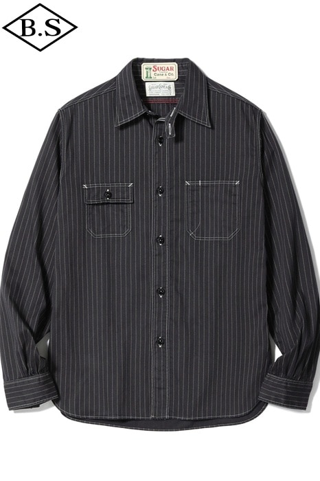 シュガーケーン SUGAR CANE 長袖シャツ SC29585 FICTION ROMANCE 8.5oz. BLACK WABASH STRIPE WORK SHIRT ONE WASH