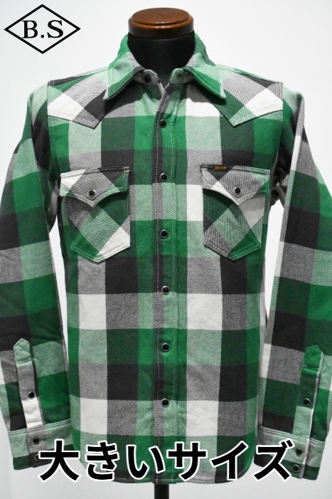 アイアンハート IRON HEART 長袖シャツ IHSH-429 UHFヴィンテージチェックウエスタンシャツ/グリーン 大きいサイズ