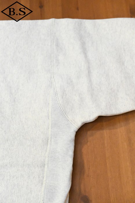 1952年に2度目の製法特許を取得した「REVERSE WEAVE(リバースウィーブ)」を復刻した、2ndパテントモデル クルーネックスウェットシャツです。本来は縦方向に使われる生地を横方向に使用して縦の生地の縮みを防ぐと同時に、1938年の1stモデルになかった両脇の「EXPANSION GUSSET(エクスパンションガゼット)」を採用することで横の縮みへの影響も少なくし、動きやすさに配慮。この改良によって2度目の製法特許を取得しました。四方をすべて縫い込んだ通称「タタキタグ」のディテールや、「REVERSE WEAVE」と「EXPANSION GUSSET」のパテントナンバーを表記した襟ネームも忠実に再現しています。さらに、左袖にCロゴワッペンが付いていない点も当時の仕様そのままです。