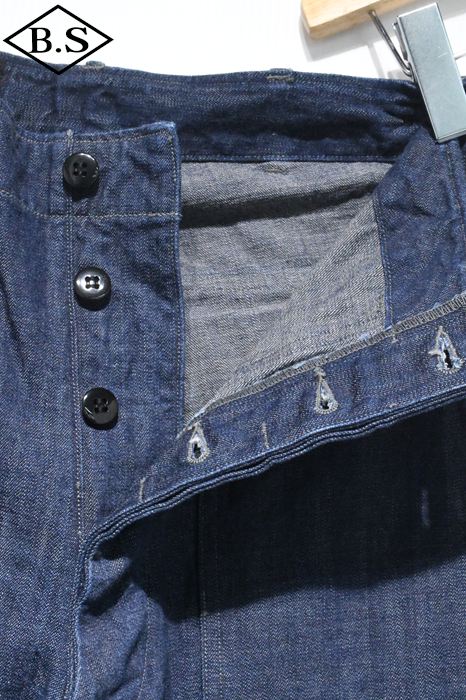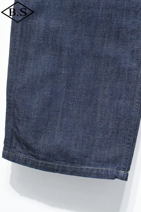 なお緯糸に硫化で染めたグレーの糸を打ち込むため、生地色も落ち着きクラシックな雰囲気を醸し出しております。当時とは違い着心地のよいデニムとなっているため機能的にも?動きやすく経年変化も楽しめる一枚となっております。HBT同様太めのシルエットとなっており、快適で雰囲気のある一本となります。