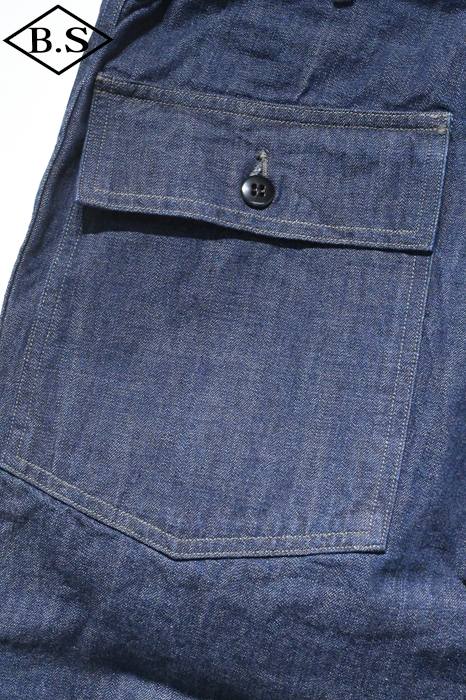 米軍が1947年に採用したヘリンボーンツイルを使用したベイカーパンツを10.5オンスのLASTRESORTDENIM青タグで仕立てました。ベイカーパンツはもともと、パン職人(ベーカー)が着用していたことからその名前が付けられたと言われています。