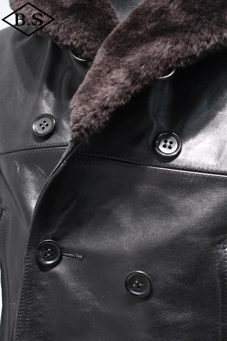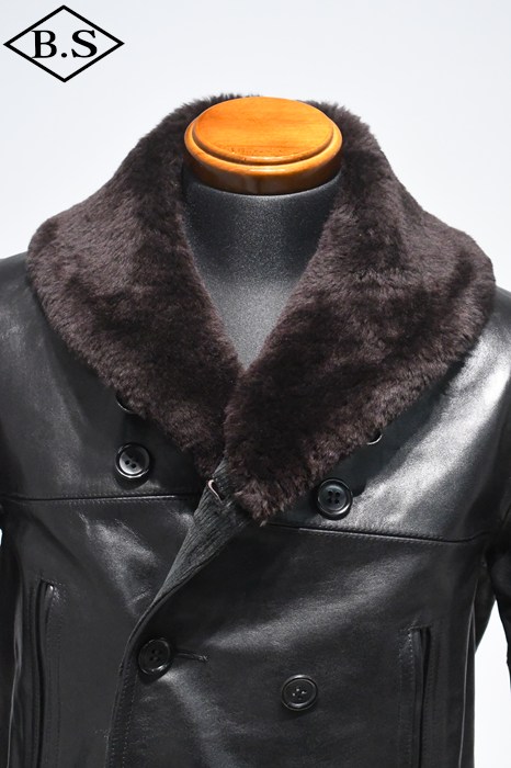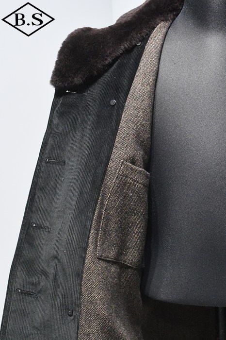 防寒性の高いショールカラー・ダブルブレストハーフコート。