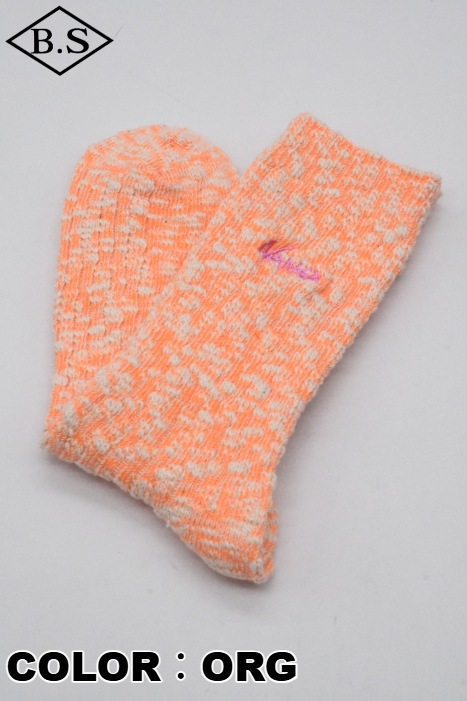 足元にアクセントをプラスする、ネオンカラーのスラブソックス