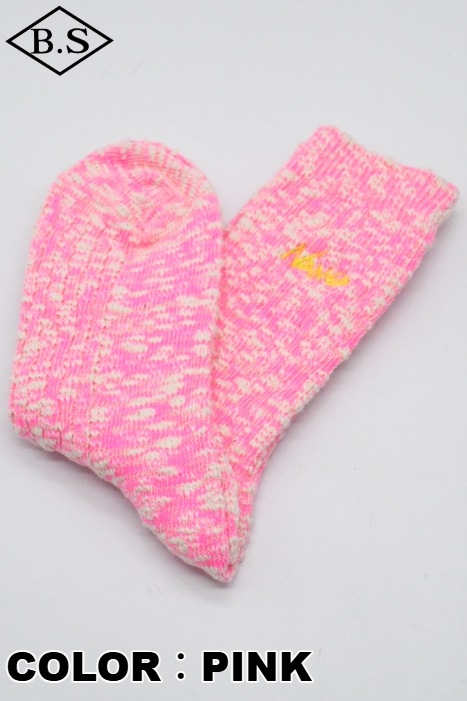 コットン・ナイロン混紡の糸を採用し、不均一な太さが生地に立体的な表情をプラス。甘く撚った部分が綿そのものの柔らかい肌触りを引き立て、快適な履き心地を提供します。