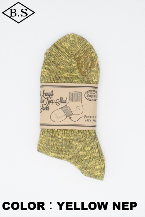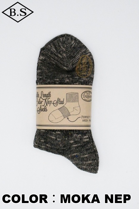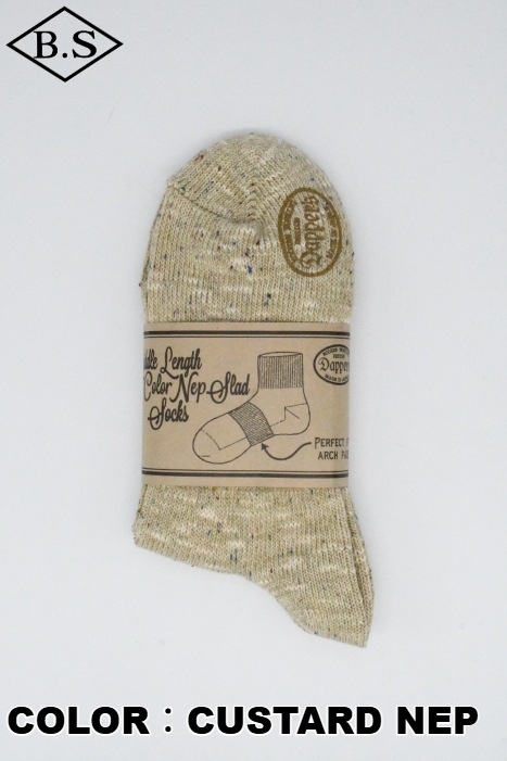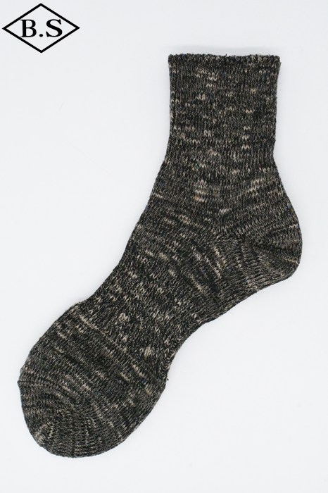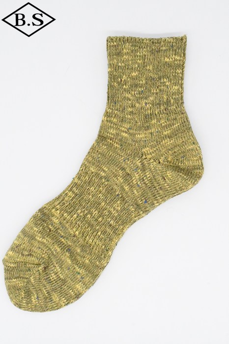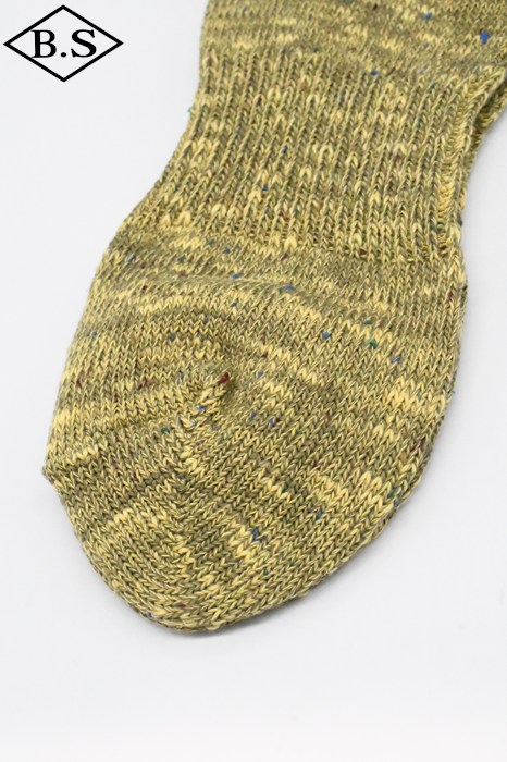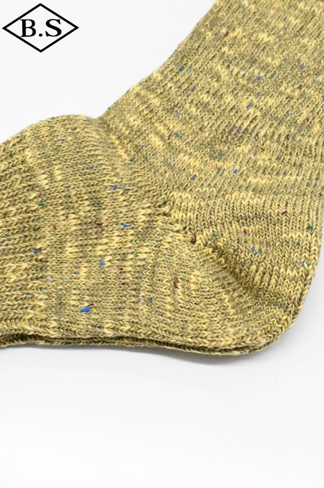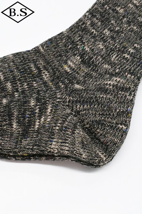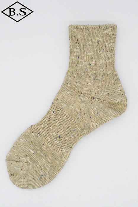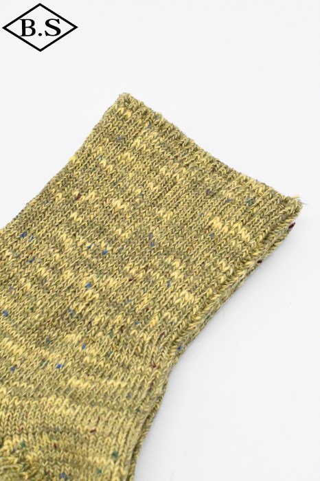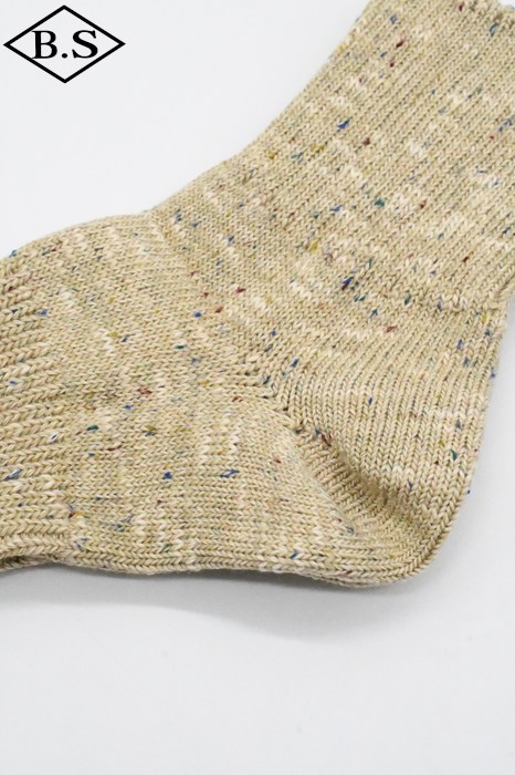 カラーネップ糸と綿スラブ糸を選定し製作したミドル丈ソックス