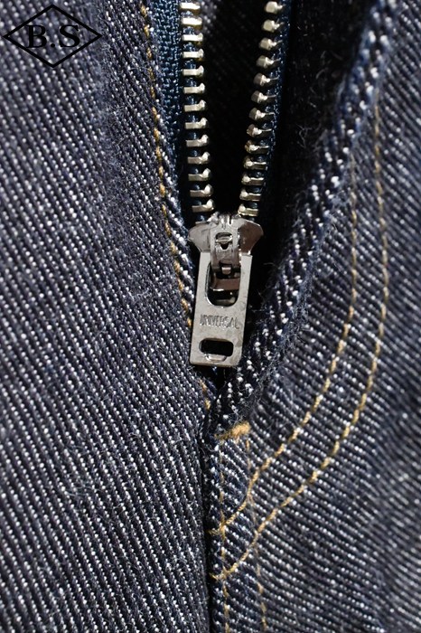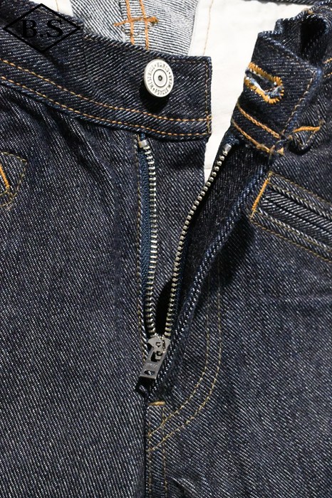NEW WR1109をベースとし製作されたモデル。生地は14.75oz ORIGINAL LEFT HAND SELVAGE DENIMを採用。伸縮性に富んだ左綾DENIMで立体裁断で仕上げているためタイトながら抜群の運動性を誇ります。前後のパネルを合わせる作りになり、シームは耳使いとなります。BUTTONはORIGINAL METAL BUTTONを使用。ZIPPERはUNIVERSAL ZIPPER。