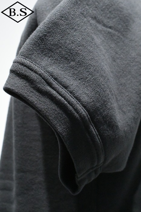 主要縫製は表裏40番綿糸を用い2本針縫製を施し、襟は継ぎ目のない丸襟(フライス)を選定し、袖口はバインダー仕様、裾も継ぎ目のないフライスを用いたスペシャルな仕様です。