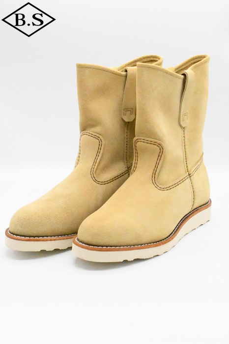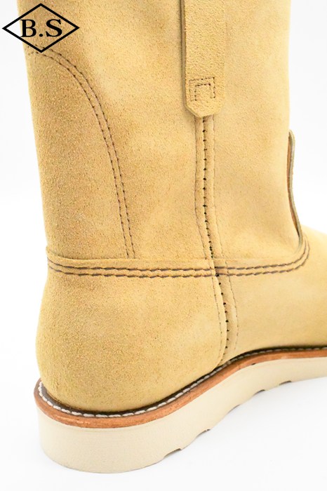 レッドウィング社はかつてテキサスに拠点を持ち、1930年代にはウエスタンブーツも販売していました。このウエスタンブーツにレッドウィング社が得意とする機能本位のワークブーツのデザイン手法を用いて、シンプルかつ頑丈で様々なワークに使えるブーツとしたものがペコスブーツです。