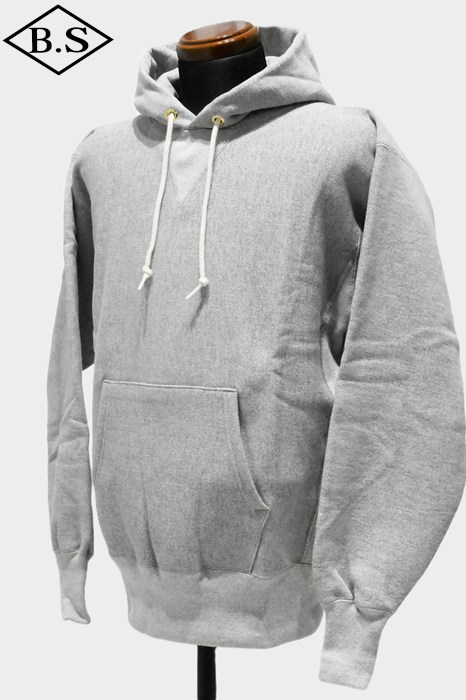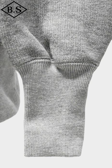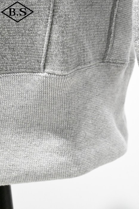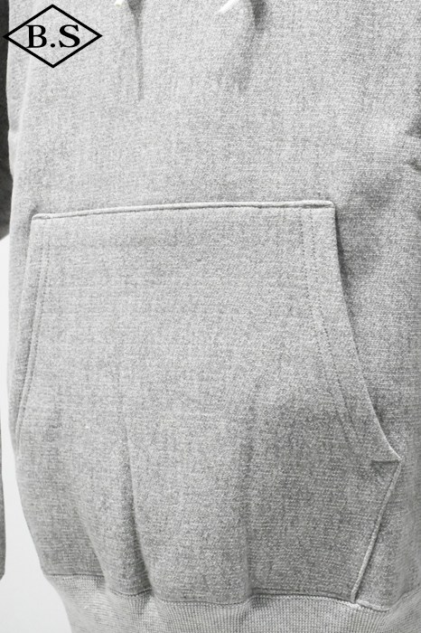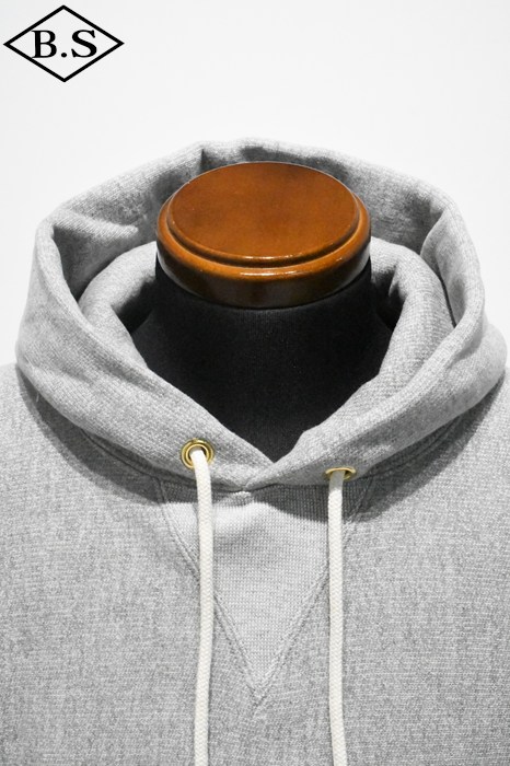 1960年後期より、アメリカの消防法に基づきコットン100%の裏起毛素材が危険と判断され、ポリエステルやアクリル、レーヨンが含まれるようになった経緯がありました。この商品は、その時代を経た1970年後期に使用されていたアクリル混の「REVERSE WEAVE?(リバースウィーブ?)」を復刻したシリーズのフーデッドスウェットシャツです。当時の混率を忠実に再現し、杢調の見え方にするためレーヨンを加え、コットン82%・アクリル12%・レーヨン6%としています。旧式のシンカー編み機で編み立てた独特のボリューム感と風合いが特長です。1970年代にChampion(チャンピオン)ブランドがアメリカ合衆国の陸軍士官学校(United States Military Academy)に供給していた商品のデザインをそのまま採用し、襟に入れた「GUSSET(ガゼット)」や、記名用にも使われた襟裏の綾テープの左右の綾の並びまで同じ仕様です。リブと身頃の生地の色合いのコントラストも当時の風合いを再現しています。同素材を使用したスウェットパンツ(C3-A218)も展開しているので、セットアップでの着用もオススメです。