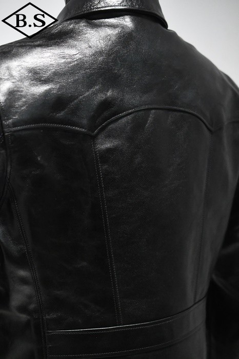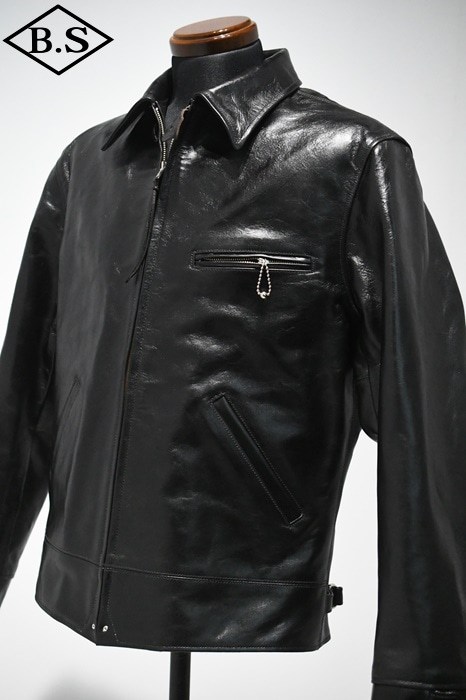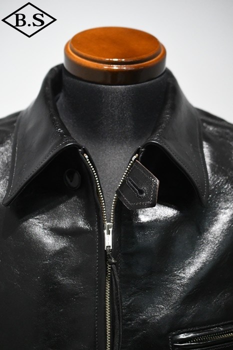 アメリカ小売業大手企業のシアーズ・ローバック社が1930年代にプライベートブランドとして生産した"HERCULES"の襟付きスポーツジャケットを元に馬革素材の仕上げ方法と型紙に拘って製作しました。