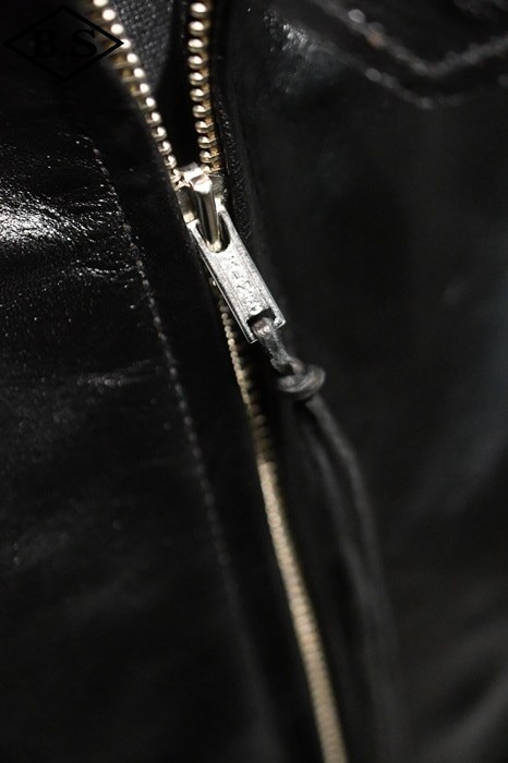ファスナーは、30年代の角型TALONを元にしたオリジナルで、ファスナーテープエンドも実物同様の金属プレートをカシメで止めるタイプを組み合わせ胸のボールチェーンも実物同様のボールチェーンをオリジナル刻印入りで製作して取り付けてあります。