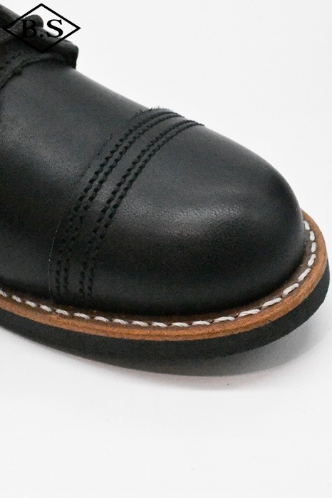 この「キャップドトゥ」は20世紀初頭のワークブーツには幅広く採用されたデザインでした。時代が流れ、現在の安全靴の標準仕様であるスティールトゥが普及するとともに減っていきましたが、一部のスティールトゥのブーツは当時のつま先保護・補強のための仕様であるキャップドトゥのデザインを1990年代まで保っていました。こうして今日に受け継がれたキャップドトゥのデザインをリファインしたものがアイアンレンジャーです。