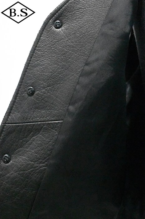 裏地にはキュプラを採用しているので、春にさらっと着ることができるレザーベストです。