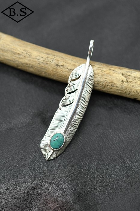 ファーストアローズ FIRST-ARROW's P-003L ターコイズ付きフェザー(L) ペンダントトップ シルバー