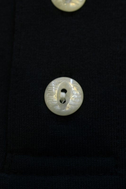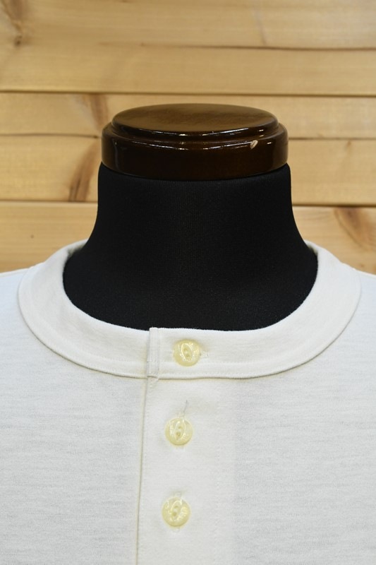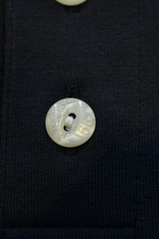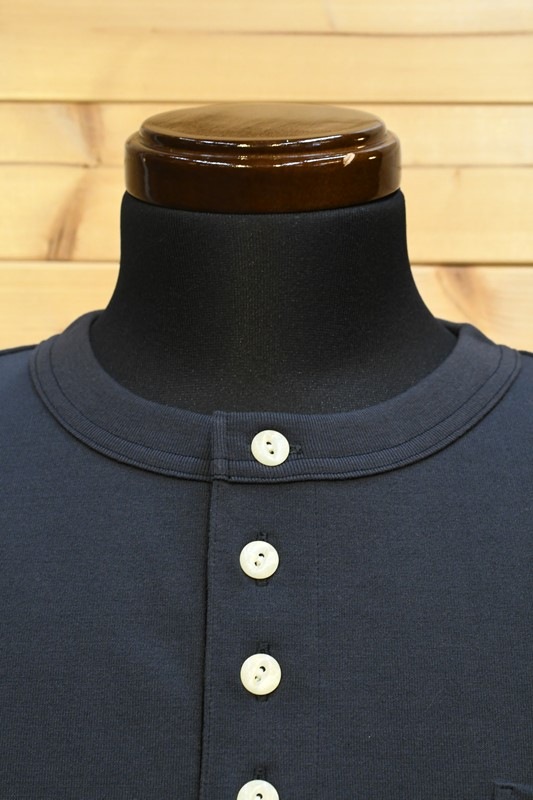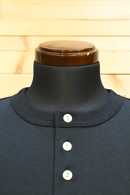 1605刻印入り猫目ボタンを使用したヘンリーネック、