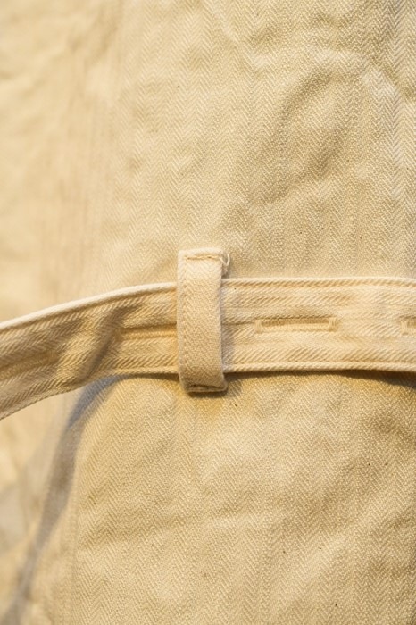 当時のフランスのワークウエアは膝あたりまで丈のあるプルオーバースモックが中心でしたが、中世より存在する腰丈のタイプも存在したと思われ、そうしたものをイメージしてデザインしたものです。