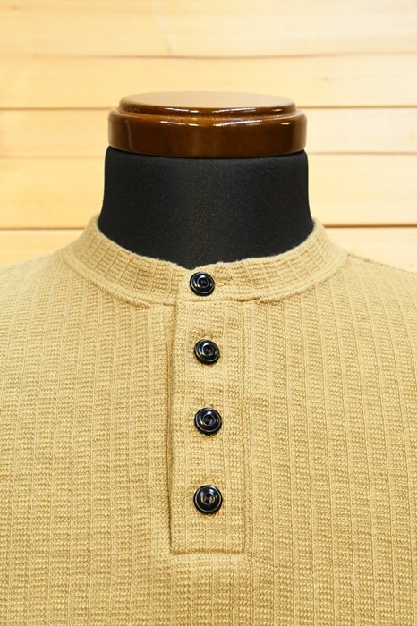 また、6分袖とヘンリーネックの組み合わせにより