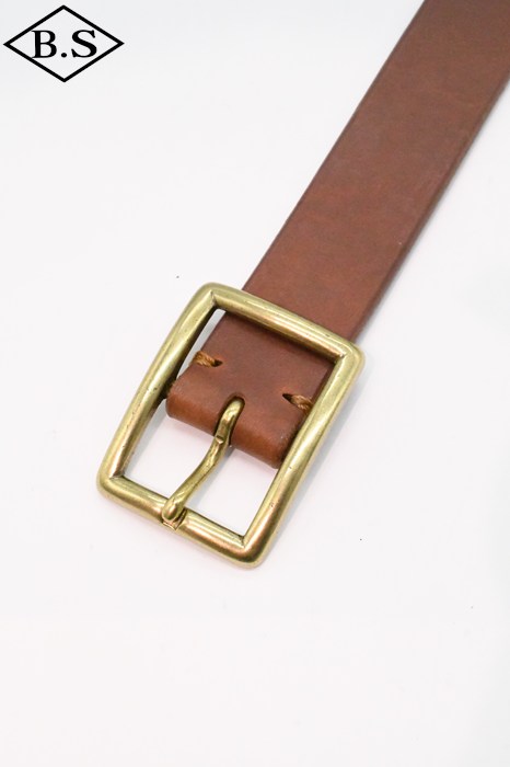バックルは真鍮製の別注シングルピンベルトを使用しています。