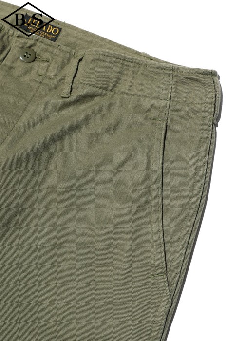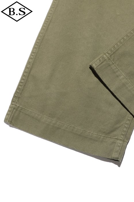 ラストリゾートデニムと同様に、数種類のデッドストックのM41 KHAKIの中から厳選した個体を解体し、糸の太さ、ムラの形状、撚り回数、撚り方向など当時の生産背景、技術力を想定しながら徹底的に作り込んだ素材となります。