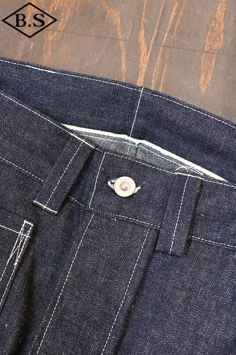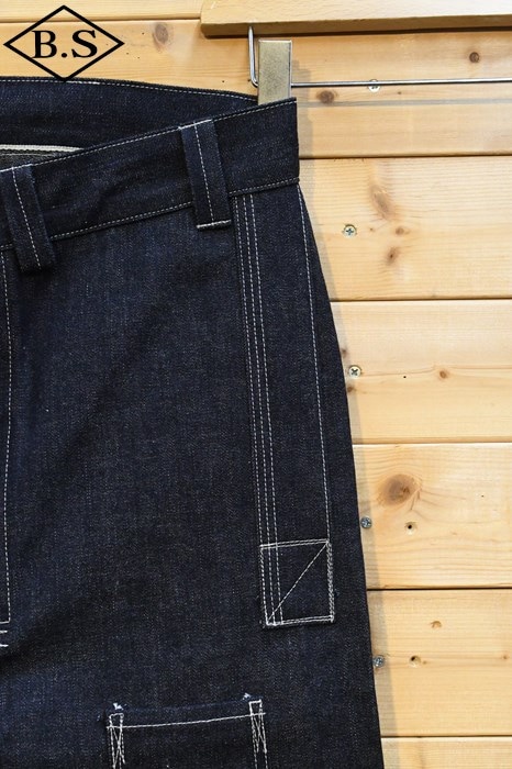 ユニークなデニムのワークパンツ。このメーカーの衣服のデザイン、構造に対する考え方は非常にユニークです。おそらくテントやギアなど、衣服以外のものを本業として作っていたのだと思います。ヒップとフロントのユニークなポケット、オーバーサイズのバックポケット、巻きデニムの脚がとても気に入っています。