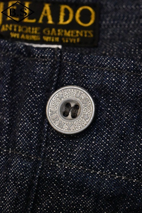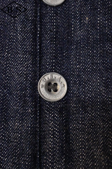 40年代のLEEのカバーオールを解体し糸の太さや打ち込み、ムラの強さなど分析をし、現代に残る色の抜けたヴィンテージの雰囲気をより再現できるよう経糸の太さを3種類ランダムに打ちこむことにより、タテ落ちがまばらに走るようイメージして作り上げました。
