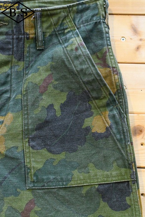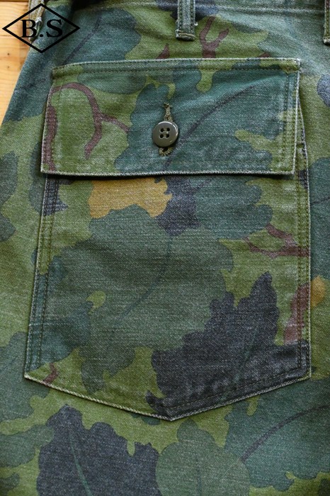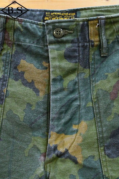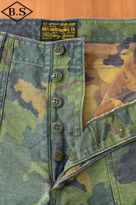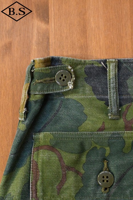 ミッチェルパターンのカモフラージュ生地は、迷彩効果を狙ってテントやヘルメットカバーなどに使用する正式な軍規格として採用されたが、ベトナム戦争時代に突入するとローカルメイドとしてジャケットやトラウザースが製造された。オーダーメイドが故にその数は稀だが幾つかの種類が存在している。第二次大戦時に採用されていたフロッグスキン同様に両面プリントのジャングル&デザート仕様で、素材はジャングル面に厚手のサテン地を裏使いし、本作では仕上げの際にエイジング加工を施している。このトラウザースの型はベトナム戦争時に登場したユーティリティーパンツと同型で、ジャングル面で着用する。