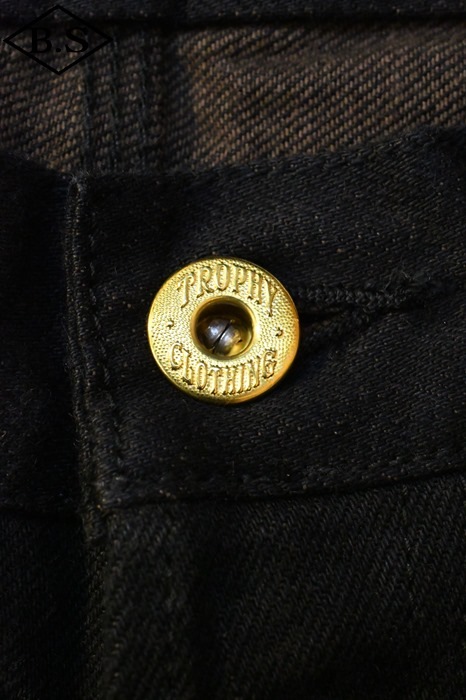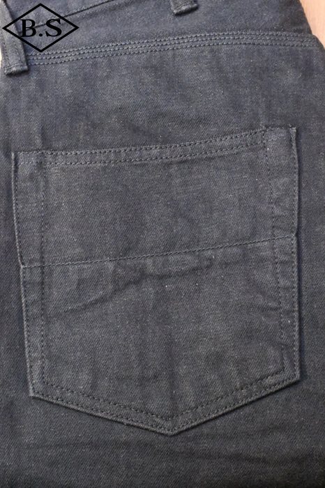 隠しリベット付きバックポケット、インシームは頑強なトリプルステッチ縫製。