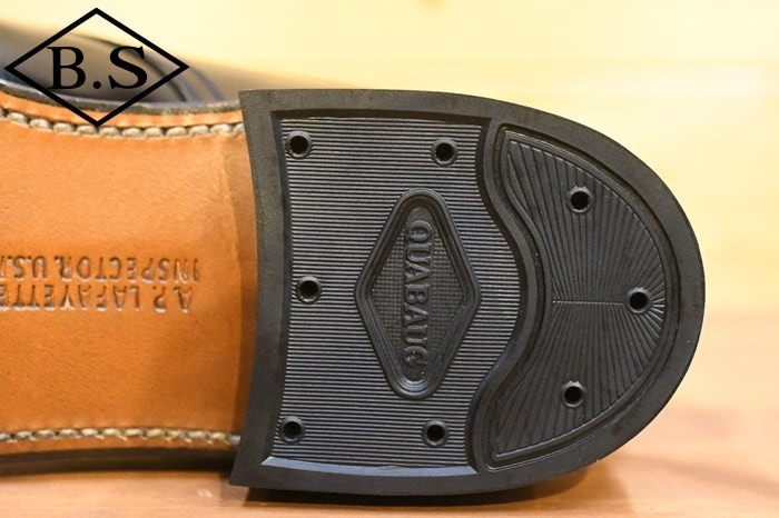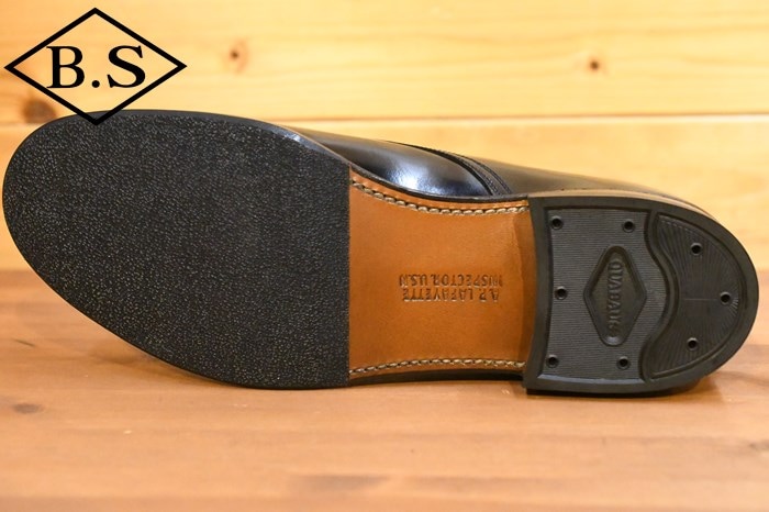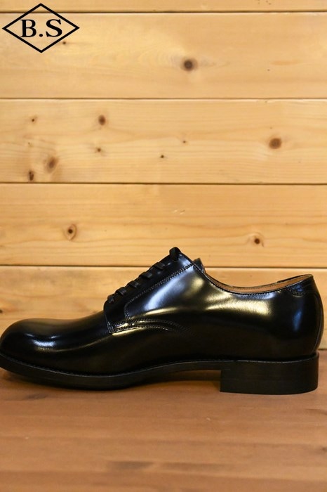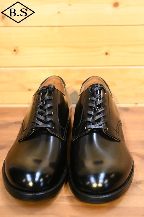 木型には、The 2 Monkeys 鈴木が以前より所有していた1941年製のネイビーラストを複製して使用。ソールは当時のサービスシューズに合わせてレザーソールとし、踏みつけ部に滑り止めラバーシートを貼って実用性を高めました。腰裏の印字、ソールの刻印なども含め、1940年代のサービスシューズの姿をできる限り再現しました。アメリカ海軍の下士官が制服に合わせて履いた黒革のサービスシューズは、シンプルにして美しく、機能的で無駄がない、革靴の最も完成された姿のひとつではないでしょうか。