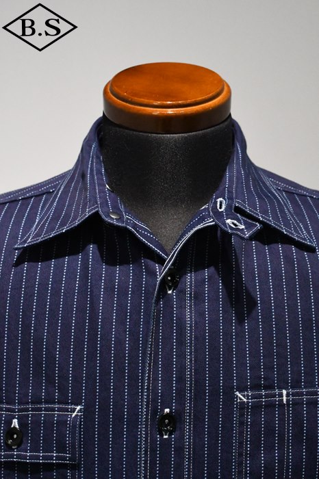 袖口の絞りはタックではなくギャザー始末で、ドレスシャツからワークシャツに移行する年代ならではの仕様。