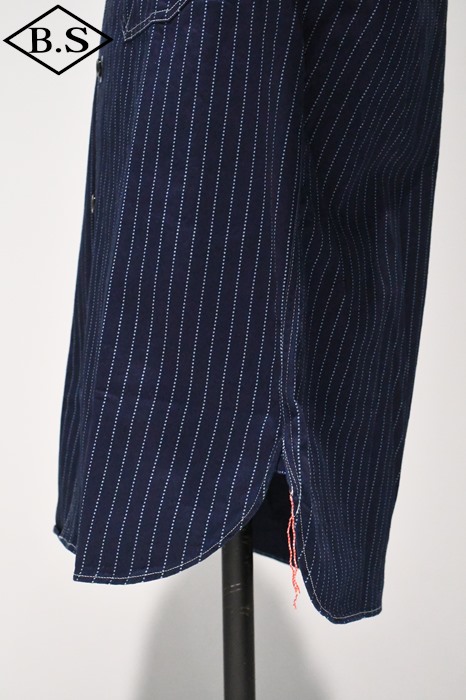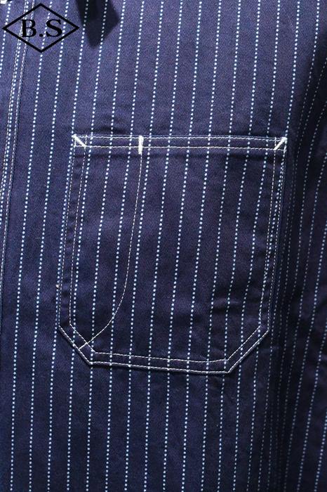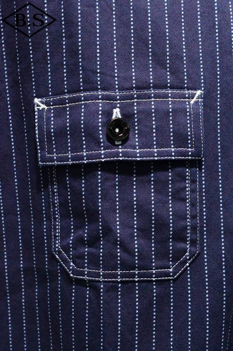 胸のポケットは戦前のワークシャツにみられる左右非対称の通称「ガチャポケ」仕様となっている。