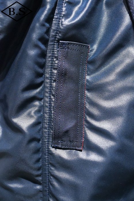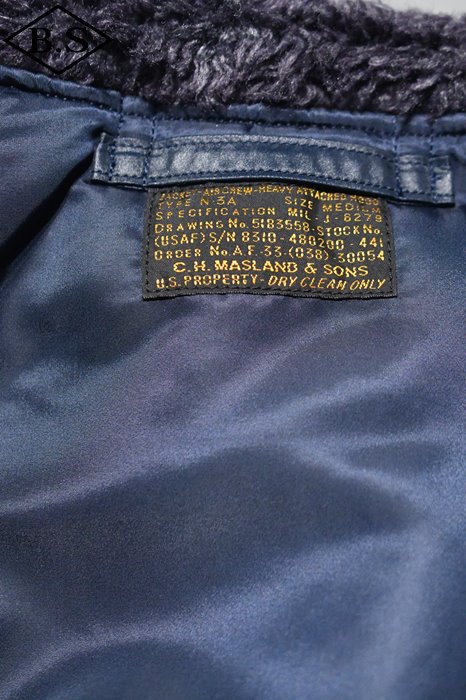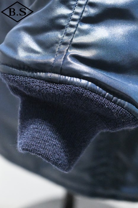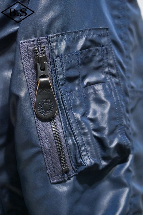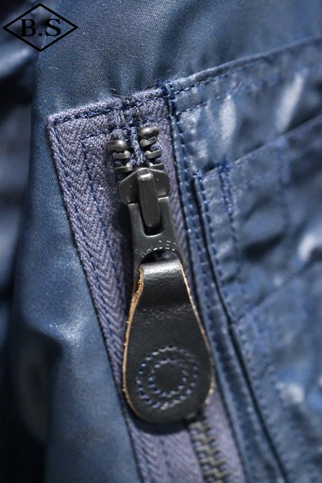 1950年代に新設されて間もなかった空軍のイメージカラーのA.F.ブルーの1着。ネイビーのアウターシェルにはシレー加工が施されているのでより光沢感の強い仕上がるとなっております。