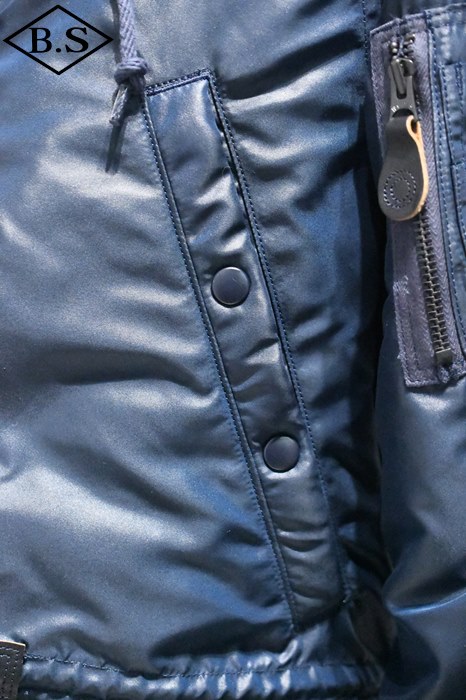戦時中に開発されたB-7 シープスキンパーカからコンセプトを継承したヘビー ゾーンと呼ばれる極寒地向けのエアクルーパーカ。元々はイヌイット族の伝統 的な被服を参考にしてデザインされ、チリウインドという氷混じりの強風の中 でも作業が出来るようにフード先端にコヨーテの毛皮を配し、装着時のフォル ムからスノーケル(潜水艦の吸排気口)パーカとも呼ばれる。
