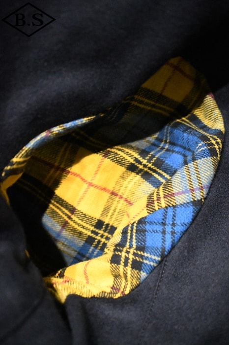 裏地には別注のウールメルトンを使用し、ボタンも別注の削り出し御椀型ナット釦を使用しています。