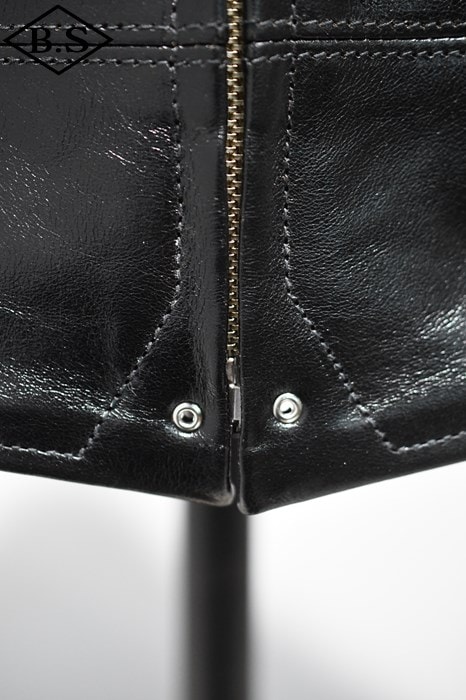 アメリカ小売業大手企業のシアーズ・ローバック社が1930年代にプライベートブランドとして生産した"HERCULES"の襟付きスポーツジャケットを元に馬革素材の仕上げ方法と型紙に拘って製作しました。