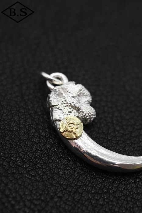 銀金具部分や、造形のうえで硬度を要する部位には、より硬い925Silver<スターリングシルバー>(92.5% 銀 / 7.5% 銅)を使用します。より硬度を必要とする場合、熱処理加工および特殊加工を施し、さらに強化します。加工処理は 950Silver に対しても同様に行うことがあり、硬度をコントロールしながら適材適所で作品をつくります。