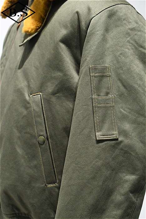 大型のムートンボア、ハンドウォームを兼ねたスラッシュポケットを始めとしたディティールは、後の空軍フライトジャケットの基本形と言える。
