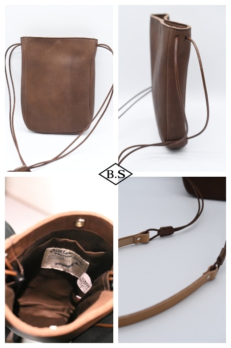 オイルレザー革を使用。ショルダーはヌメ革の3mm丸紐です。