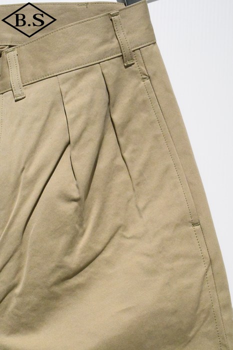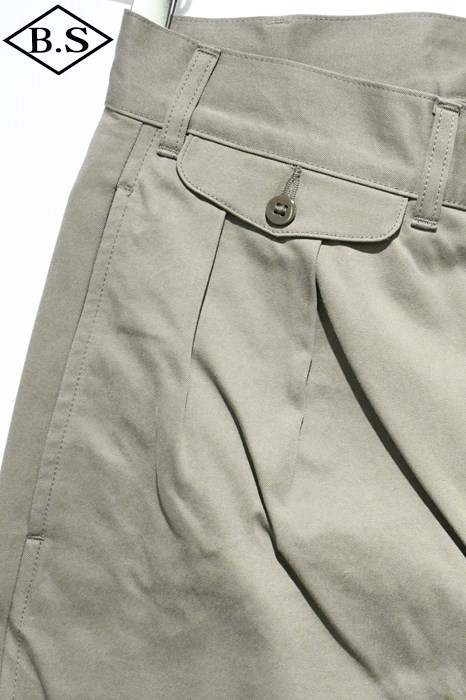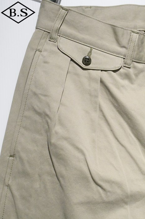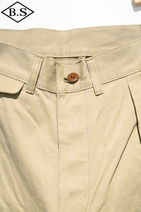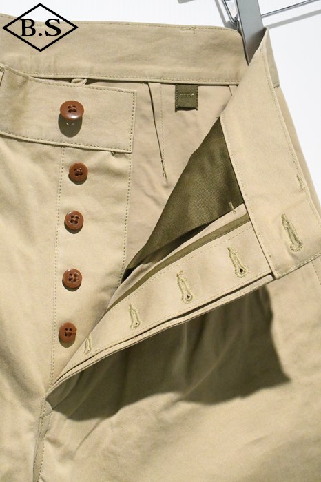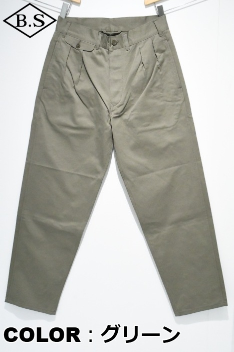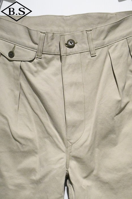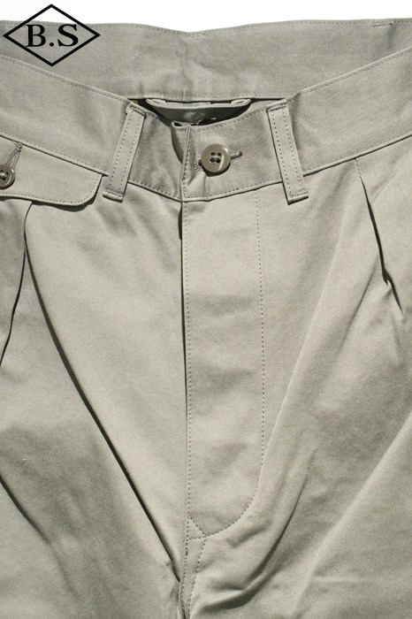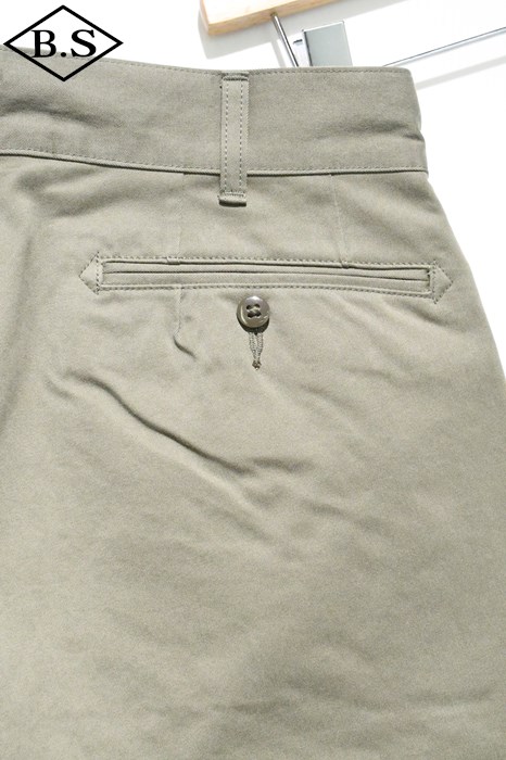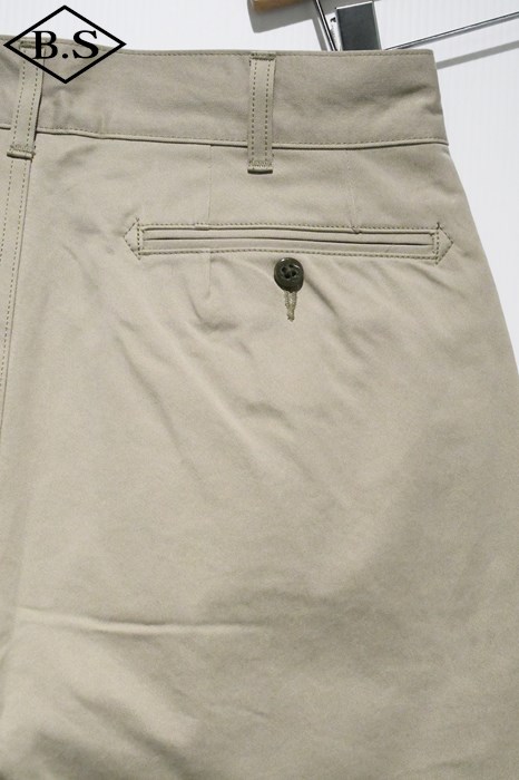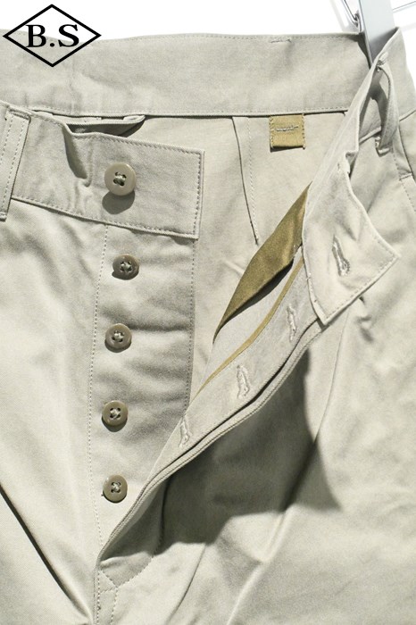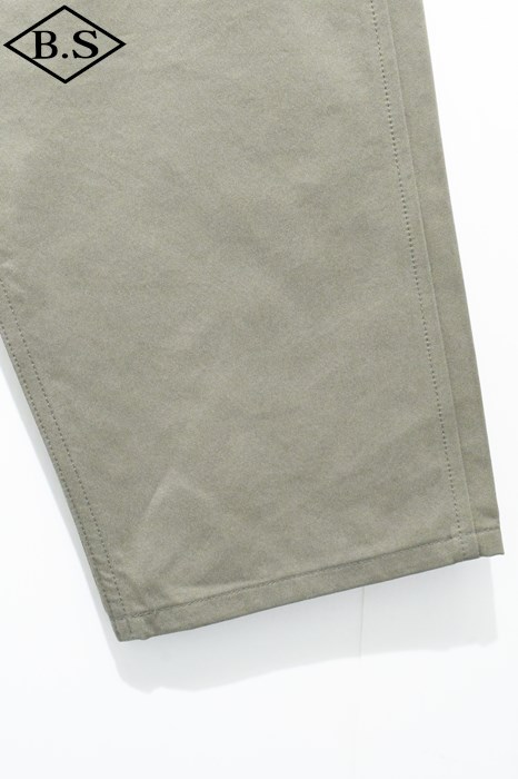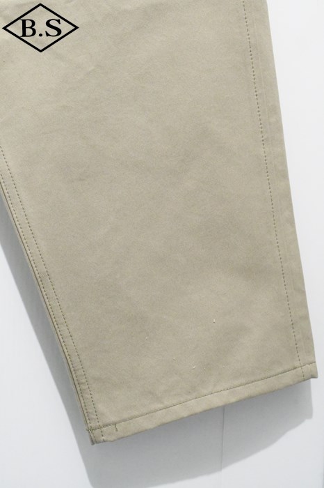 ヴィンテージチノクロスにニドム加工を掛けしなやかで柔らかい風合いと為している事が大きな特徴。ワタリからスソにかけてナチュラルに細く絞り込んだテーパードラインがもうひとつの特徴。
