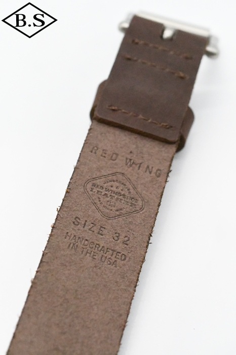 レッドウィングの自社タンナリーである「S.B. FOOT」社製のレザーを使った、8-9オンスのクロム鞣しのベルトです。