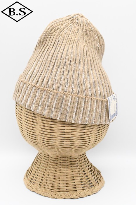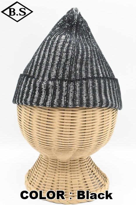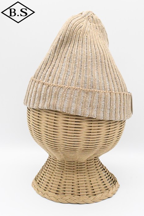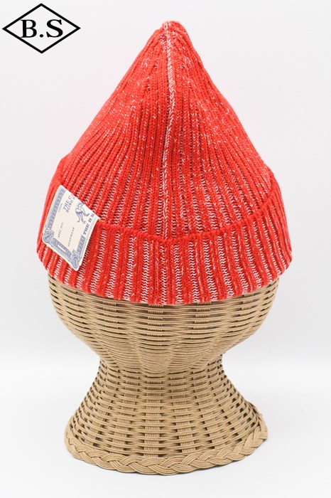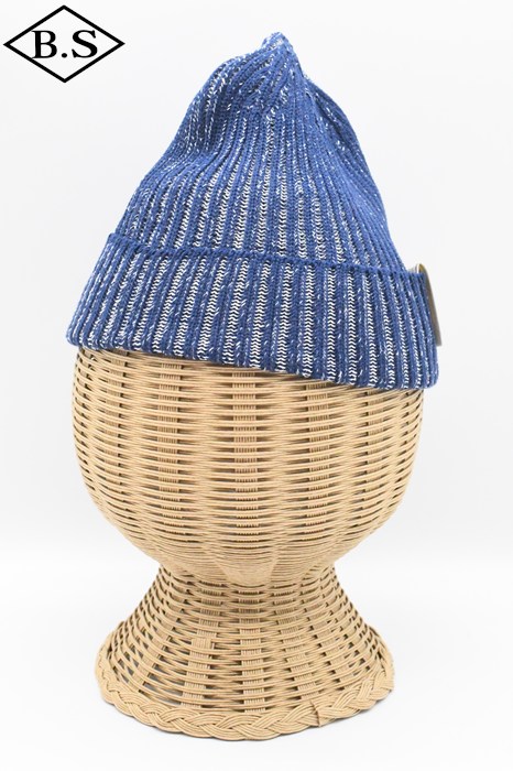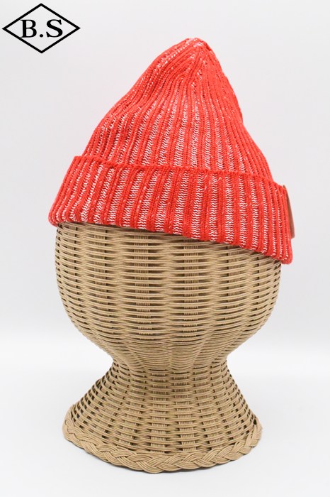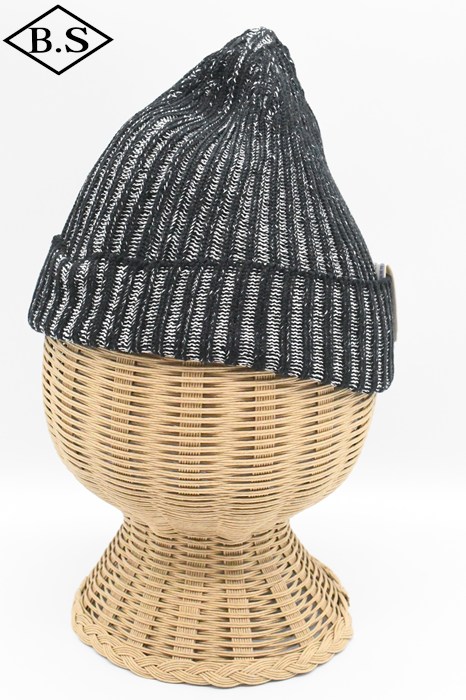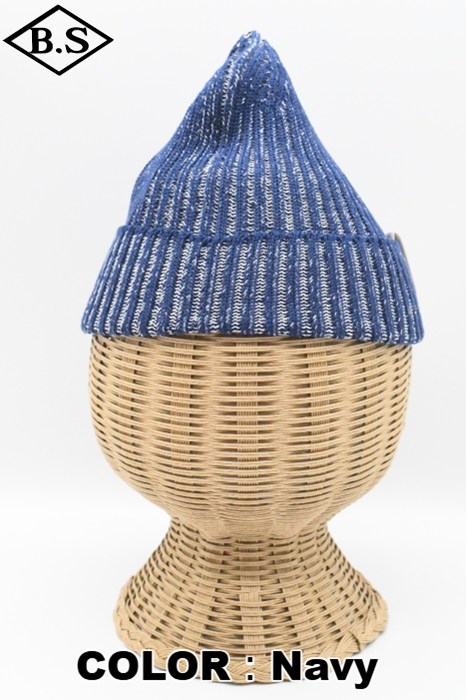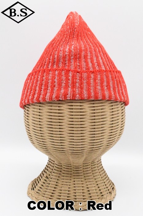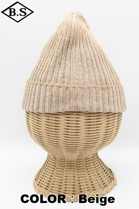 伸縮性が強く被った時にリブが開き、内側の別色糸が出てくる変わり種のニット帽です。