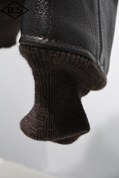 アメリカ陸軍航空隊のA-2ジャケットは馬革を採用していましたが、海軍ではゴートスキン(山羊革)を採用し、襟にシープスキンのファーを付けたことでより武骨な見栄えになっています。