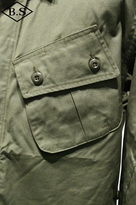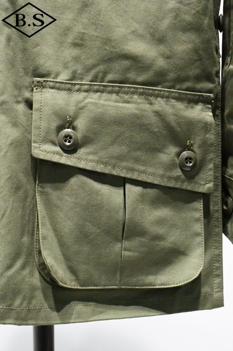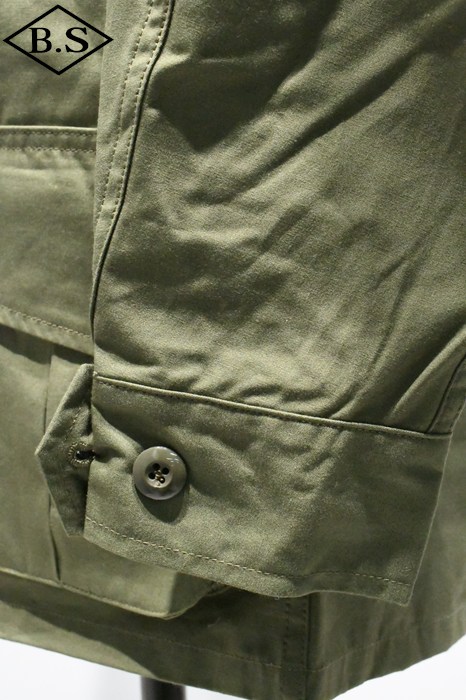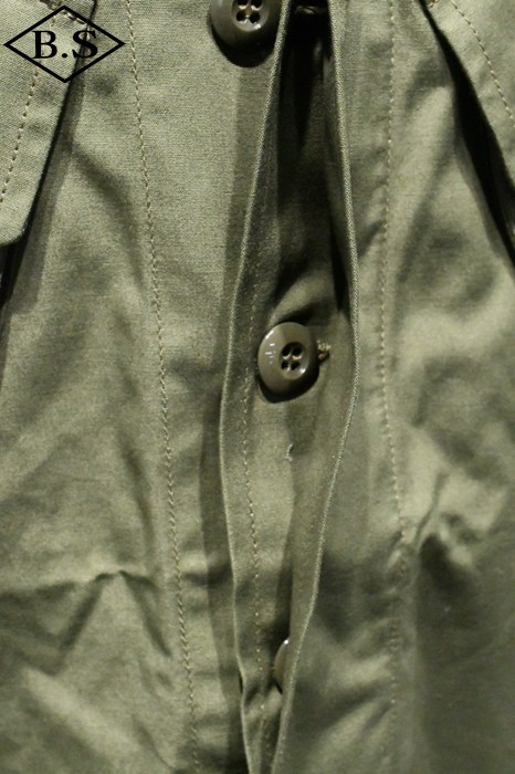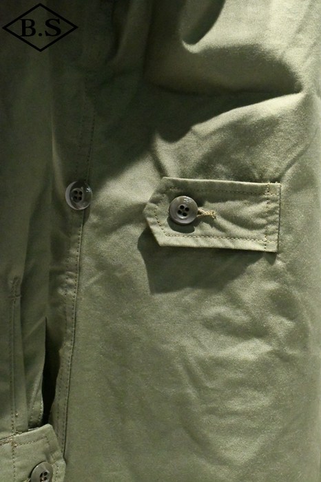 コットンポプリンの軽い生地やボタンが剥き出しになったポケットなど、ファーストモデルを忠実に再現している。