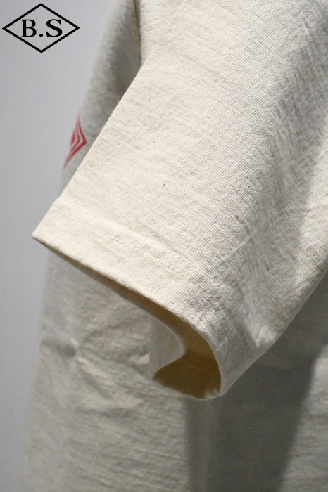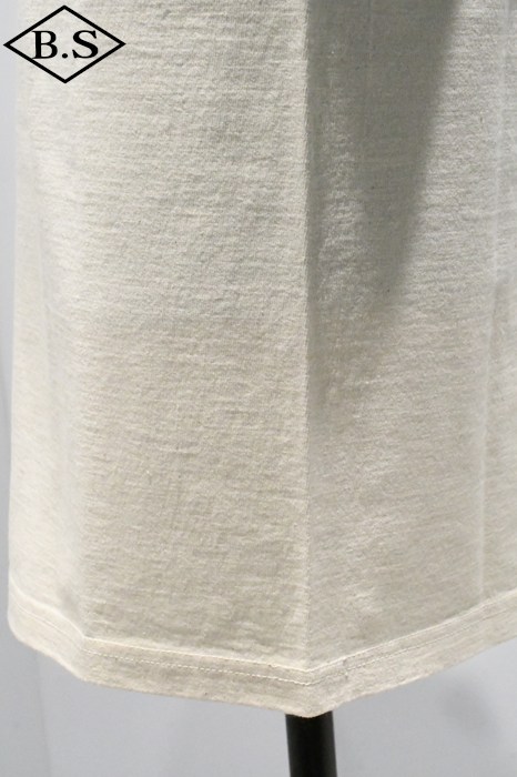 ニッター(編み手)の方々の協力を得て、このサイズを復活展開することができました。使用した14番の糸は空紡糸を使い、乾いた質感で程よい肉感のボディに編みたてています。