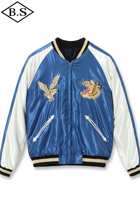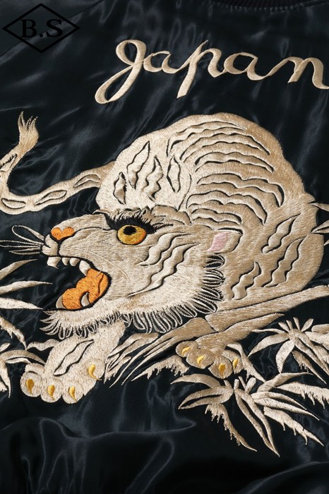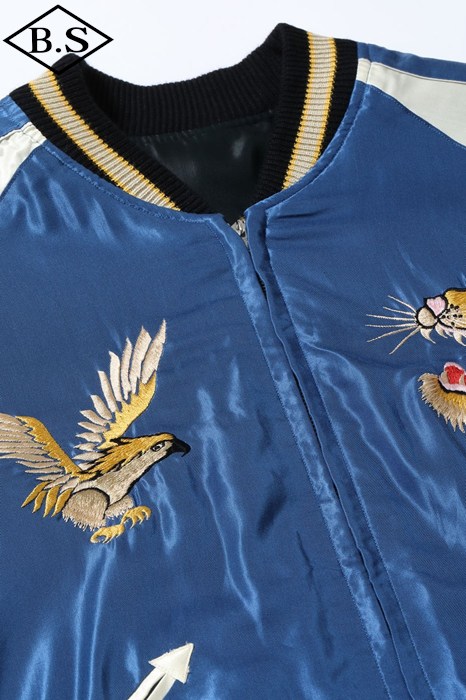 胸には鷲と虎が描かれており、スカジャンの三大モチーフである鷲・虎・龍が揃った贅沢な一着。