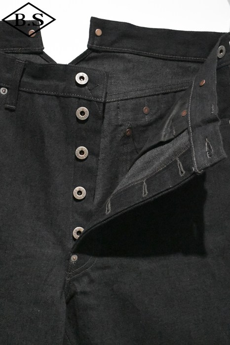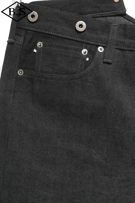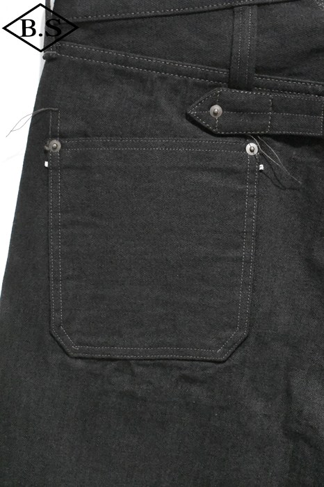 1920年代にフランスのレイルマンたちが着用していたヴィンテージ・デニムをベースにしたデザインで、深い股上と幅広のワタリによる迫力あるシルエットが特徴です。 ヴィンテージ・デニムを徹底解析し、現代に蘇らせたブランド・オリジナルのスペシャル・ファブリックを使用しています。縦方向にみられる明らかに普通のデニムとは異なる複雑で豊かな凸凹は、タテ糸に異なる3種類の太さの糸をランダムに配置している事からきています。大戦下の物資不足が背景にあり、太さの違う糸を端から順に配置し織り上げた、決して通常では行なわれない織上げ方法です。大戦下に生まれ、大量生産の波に飲まれてほんのわずかな期間しか存在しなかった幻のようなデニムです。