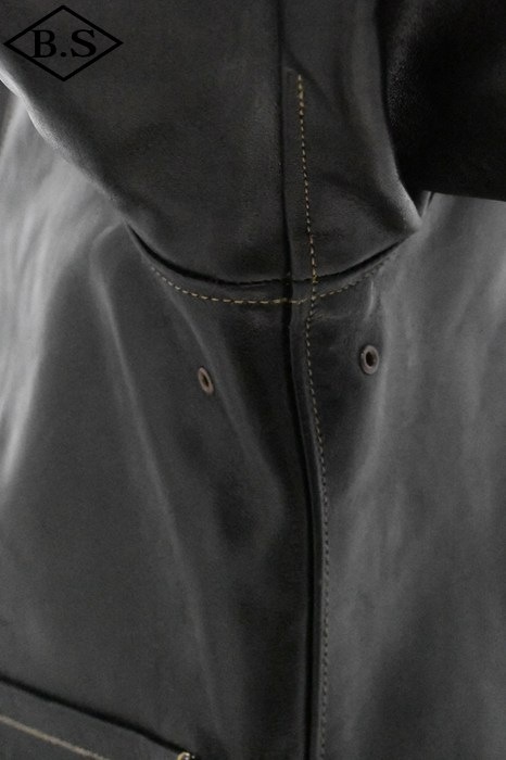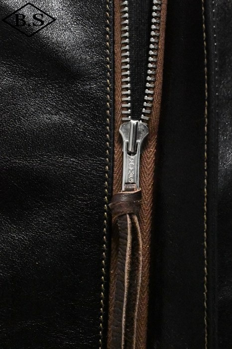 馬革の着色は、実物には見られない濃い焦げ茶色の染料で着色してダークシールブラウンに仕上げています。