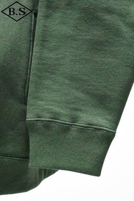 米式起毛機による裏毛起毛と脱脂処理で、ヴィンテージ特有の乾いた質感を再現しています。