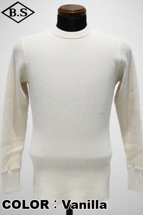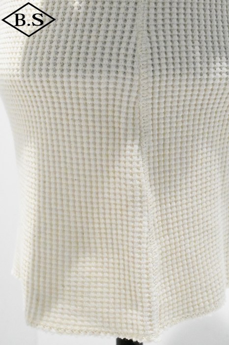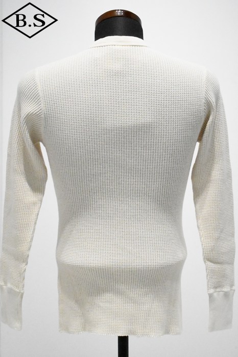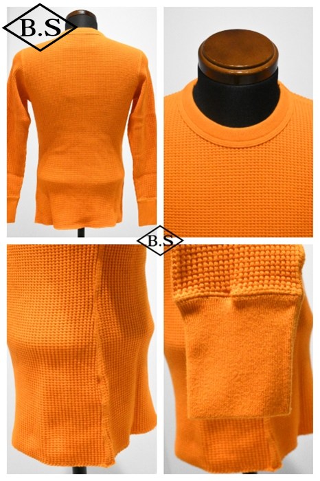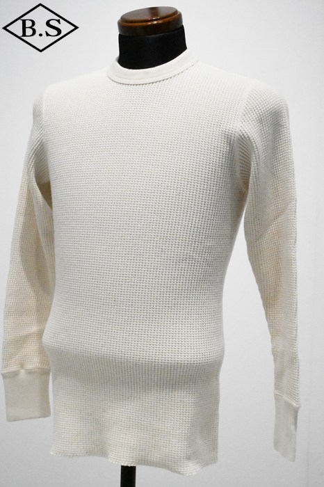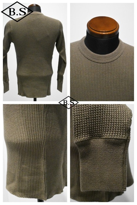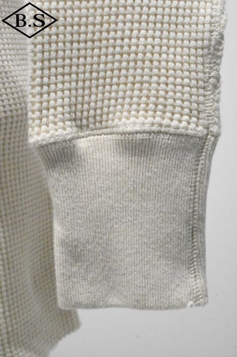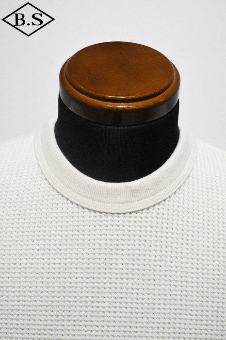 極厚の10/-サーマル生地:通常のヘビーサーマルに使用される30番手糸を超える、10番手糸を採用。凹凸が大きくはっきりとしたワッフル目面が特徴で、空気の層を作り出し、優れた保温性を発揮します。洗濯を重ねてもふんわり感が続き、体にフィットしながらもストレスフリーな着心地を提供。タイトなシルエットでインナーとしても活躍します。