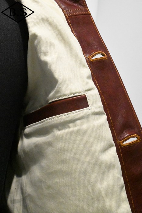ダブルヘリックスのこのジャケットは、ボックスのボディラインをやめてややスリムなシルエットに裁断し、ポケットの大きさの設定も程良く、デザインに合わせて調整しています。