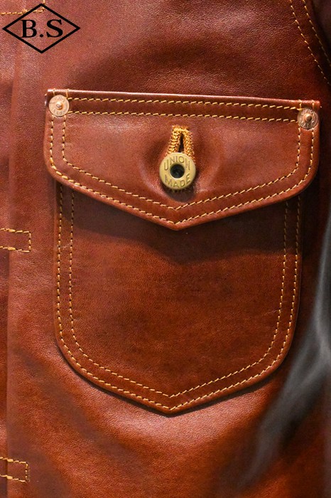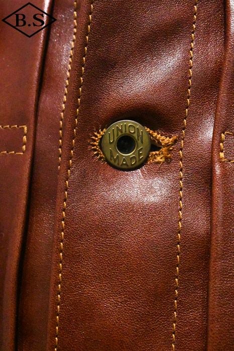 ブラスのボタンとリベートはユニオンメイドで、後身頃のシンチバックも真鍮製でワークウェアの味を再現しています。